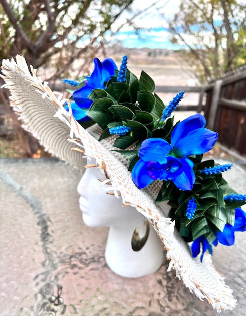 White/Green Ti Leaves with Purple Plumerias - Lei Po'o